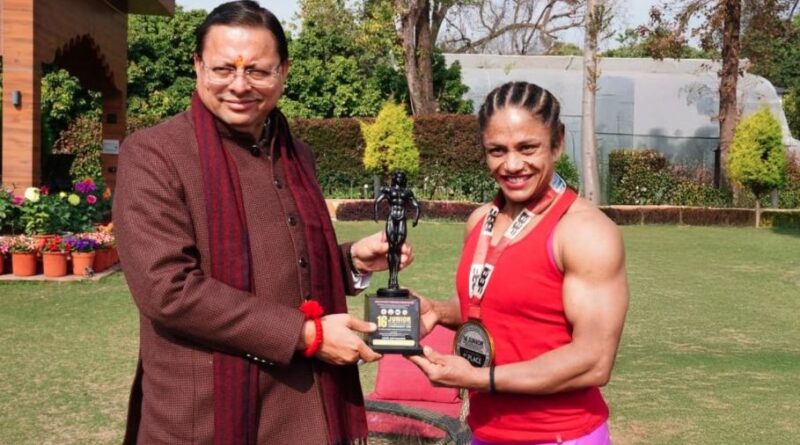 मुख्यमंत्री धामी ने बॉडी बिल्डर प्रतिभा थपलियाल को किया सम्मानित